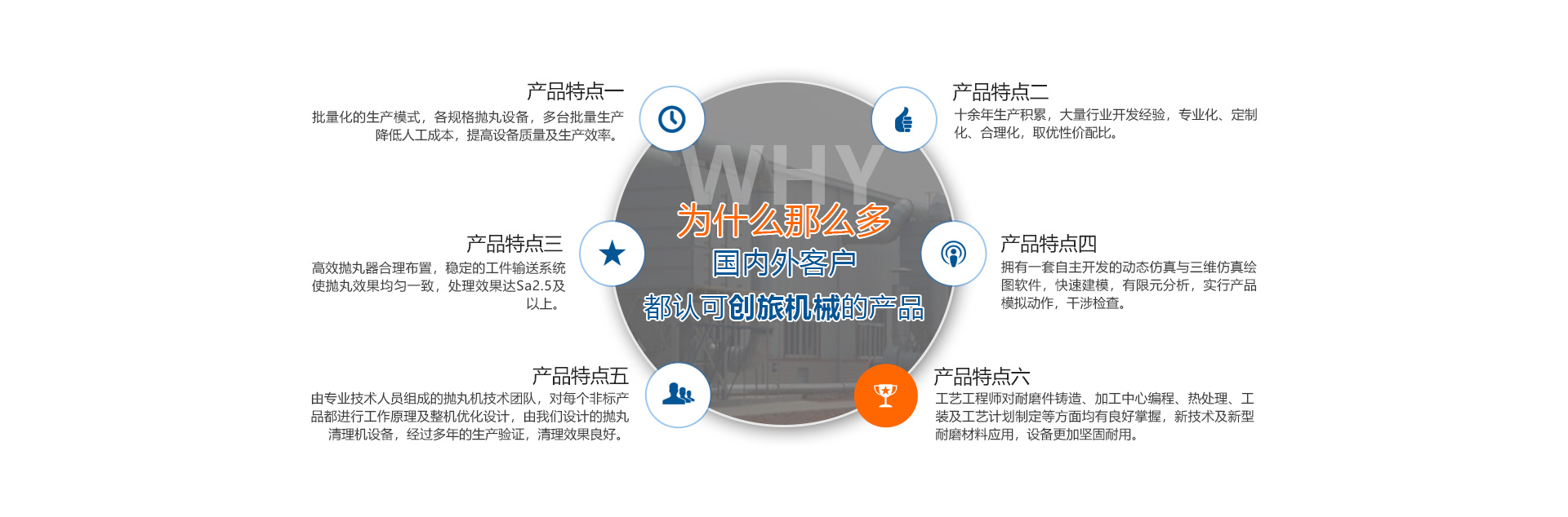 合肥市創(chuàng)旅機(jī)械有限公司是專業(yè)的噴砂房、拋丸機(jī)生產(chǎn)廠家,生產(chǎn)不同型號不同價格的江蘇拋丸機(jī)、江蘇 噴砂房、除銹機(jī)、拋丸清理機(jī)械、自動噴砂機(jī)械、通風(fēng)除塵設(shè)備、砂處理成套設(shè)備、鋼丸及各種耐磨合金 件的大型專業(yè)化制造企業(yè)。 我公司愿與各行各業(yè)的朋友交往與合作,使您的產(chǎn)品更光彩! 產(chǎn)品有:鋼板預(yù)處理生產(chǎn)線,噴砂房,噴砂機(jī)械,噴砂設(shè)備,拋丸機(jī),拋丸清理機(jī),混砂機(jī),噴丸機(jī) ,拋 噴丸機(jī),履帶式拋丸清理機(jī),鋼板除銹機(jī),鋼材除銹機(jī),板...
